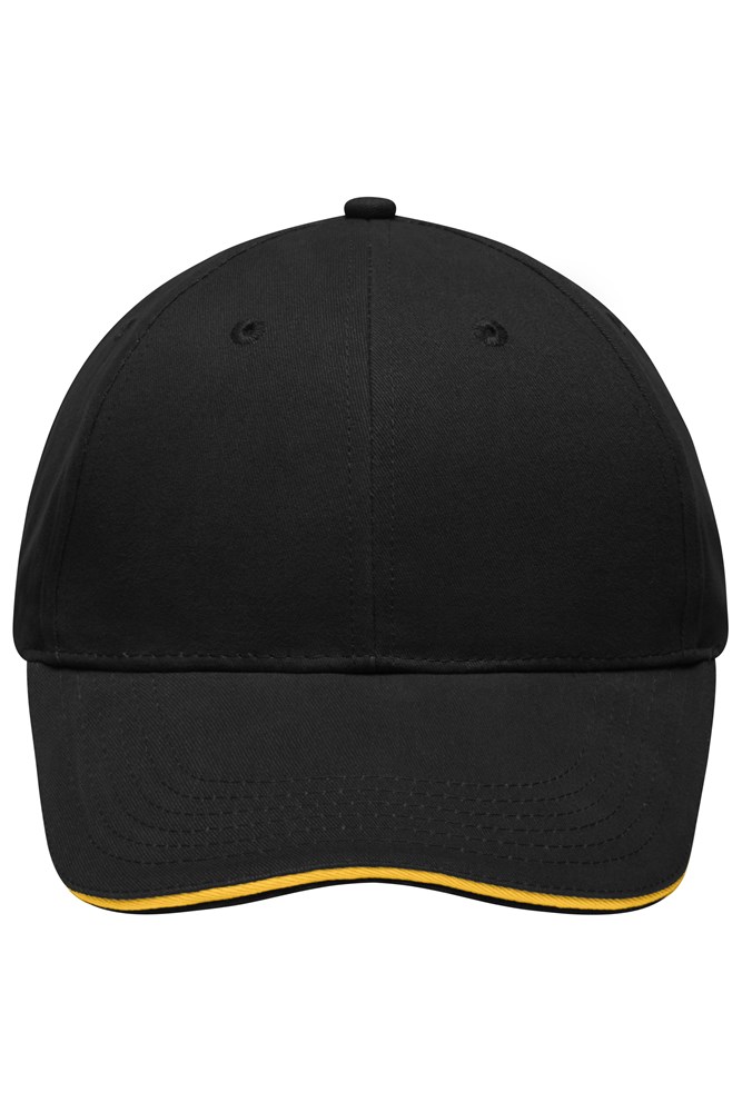 6 gestickte Luftlöcher 6 Ziernähte am Schild Laminierte Frontpanels Gefüttertes Satinschweißband Clipverschluss in mattsilber mit Metallöse Brushed Cotton.
