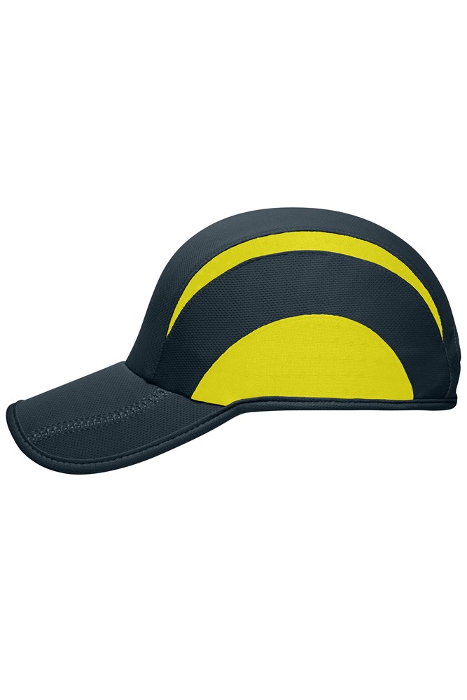 Atmungsaktiv, feuchtigkeitsregulierend und schnell trocknend Geformtes, eingefasstes Schild mit 2 zierenden Flatlock-Nähten Komfortable, stirnanliegende Form Angenehmer Tragekomfort durch das wattierte Polyesterschweißband Klettverschluss mit Silikon-Lasche zur mühelosen Größenregulierung.