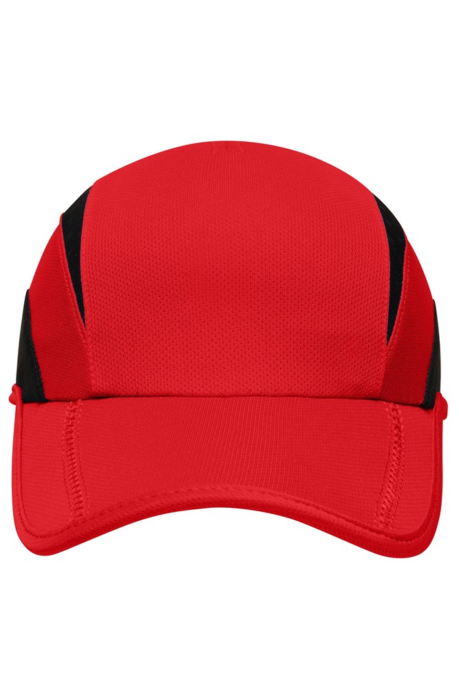 Atmungsaktiv, feuchtigkeitsregulierend und schnell trocknend Geformtes, eingefasstes Schild mit 2 zierenden Flatlock-Nähten Komfortable, stirnanliegende Form Angenehmer Tragekomfort durch das wattierte Polyesterschweißband Klettverschluss mit Silikon-Lasche zur mühelosen Größenregulierung.