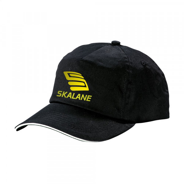 Baseballkappe aus 100% Baumwolle mit vorgeformtem Schirm und Klettverschluss.