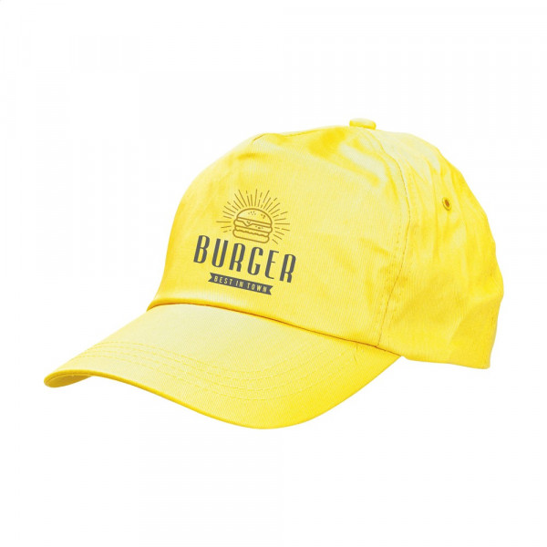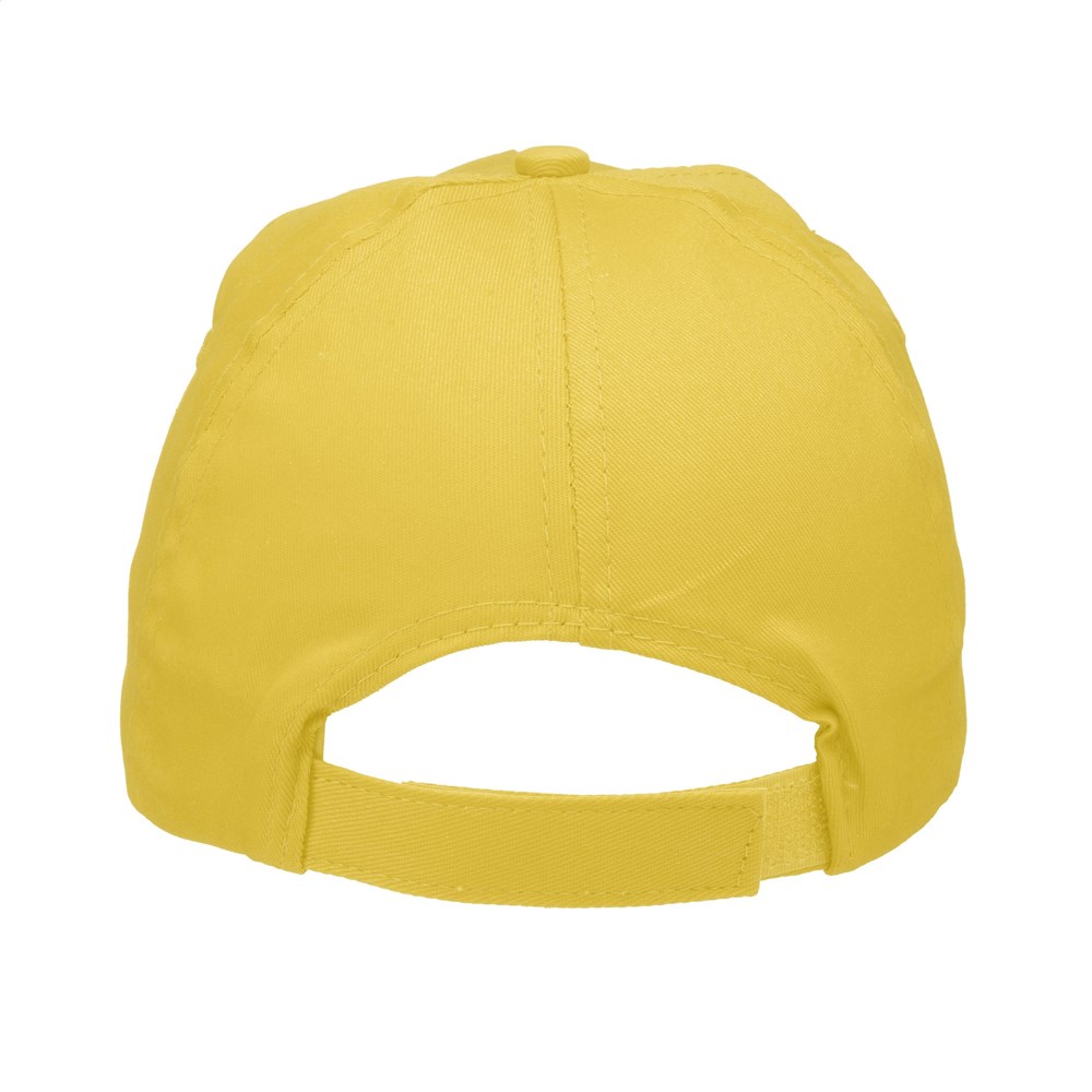 Baseballkappe aus 100% Baumwolle mit vorgeformtem Schirm und verstellbarem Verschluss.