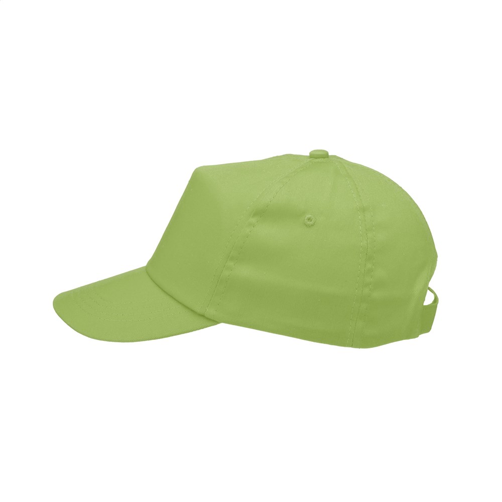 Baseballkappe aus 100% Baumwolle mit vorgeformtem Schirm und verstellbarem Verschluss.