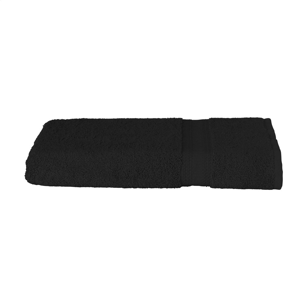 Badetuch der Marke Solaine. Aus 100 % Baumwolle (360 g/m²), weich und bequem. Mit wunderschön gewebtem Band mit attraktivem Motiv. Info: Die Möglichkeiten des Stickens kleiner Details (wie auch kleiner Buchstaben) ist wesentlich begrenzter als beim Drucken. Bei nicht-stickbaren Details in Ihrem Logo, erhalten Sie von uns natürlich eine Nachricht.
