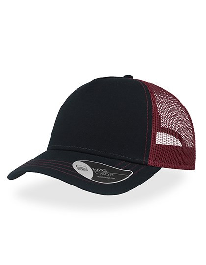 100% Baumwollsegeltuch, Seite und Rückseite: 100 % Polyester | 5 Einsätze | Mittleres Visier | Mesh hinten | 4 Stiche am Visier