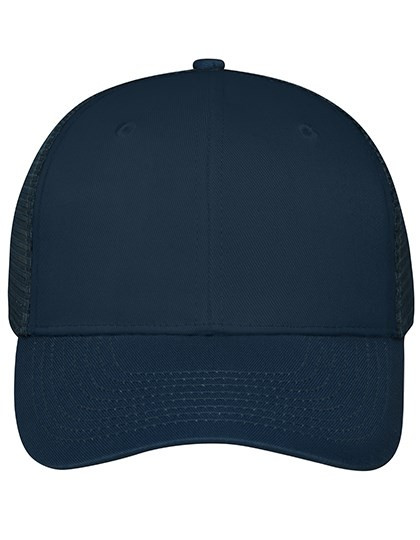 Trendiges 6 Panel Mesh Cap aus Polycotton | 8 Ziernähte auf dem Schild | 2 gestickte Luftlöcher an den vorderen Panels | Gefüttertes Schweißband | Größenregulierung durch "click & snap" Verschluss | Frontpanel: laminiert