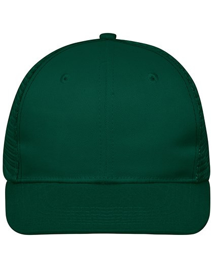 Trendiges 6 Panel Mesh Cap mit flachem Schild aus Polycotton | 8 Ziernähte auf dem Schild | 2 gestickte Luftlöcher an den vorderen Panels | Gefüttertes Schweißband | Größenregulierung durch "click & snap" Verschluss | Frontpanel: laminiert