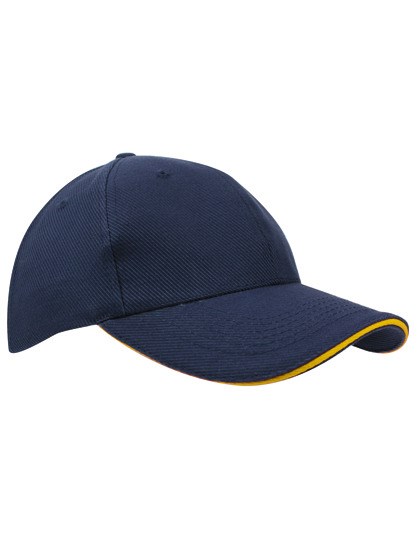 6-Panel-Cap | Strukturierte Baumwolle | Mit Frontverstärkung | Verstellbar durch Metallclip | Kontrast-Streifen im Schildrand | Ziernähte