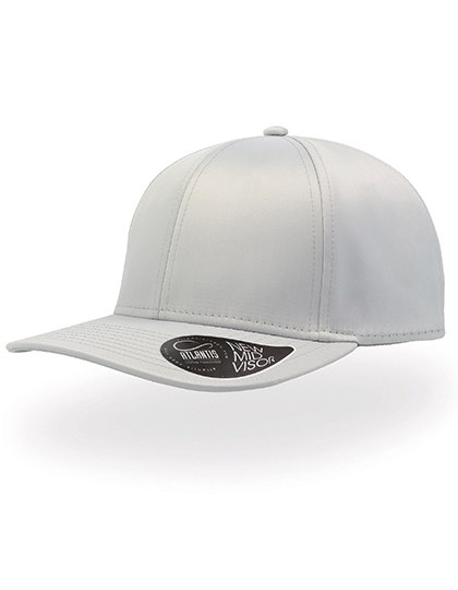 Sechs Einsätze | Strukturierter vorderer Einsatz | Leicht gebogener Schirm | Aufkleber auf dem Schirm | Verschluss mit Schnalle und genähter Öse | Acht Ziernähte auf dem Schirm | Baumwoll-Schweißband
