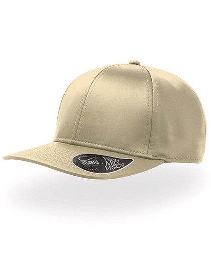 Sechs Einsätze | Strukturierter vorderer Einsatz | Leicht gebogener Schirm | Aufkleber auf dem Schirm | Verschluss mit Schnalle und genähter Öse | Acht Ziernähte auf dem Schirm | Baumwoll-Schweißband