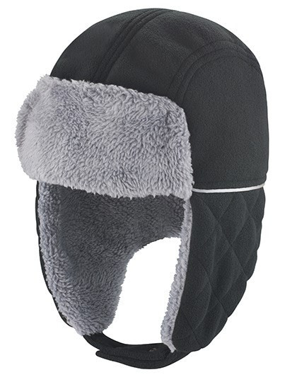 Außen: 100% Polyester, Innen: 100% Polyester-Fleece | Windabweisend | 4-Panel-Schnitt | Reflektierende Details | Verstellbarer Druckknopfverschluss | Gesteppte Ohrschützer