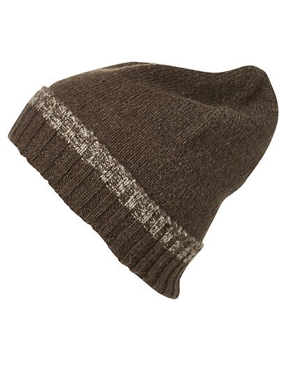 Leicht angeraute Oberfläche | Rechts-linksgestrickt | Effektvolle Akzente durch 2-farbiges Ripp-Design an der Krempe