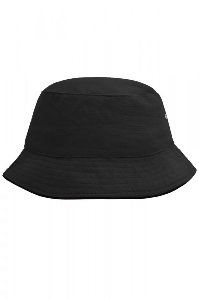 Paspel an Krempe teilweise kontrastfarbig 4 Metallösen 8 Ziernähte auf der Krempe Gefüttertes Satinschweißband Größe: S/M = 56 cm, L/XL = 58 cm Passender Kinderhut Art. MB013 Heavy brushed Cotton.