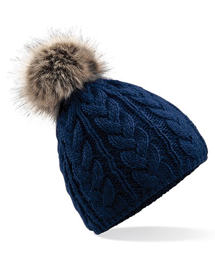 Beechfield - Faux Fur Pop Pom Cable Beanie