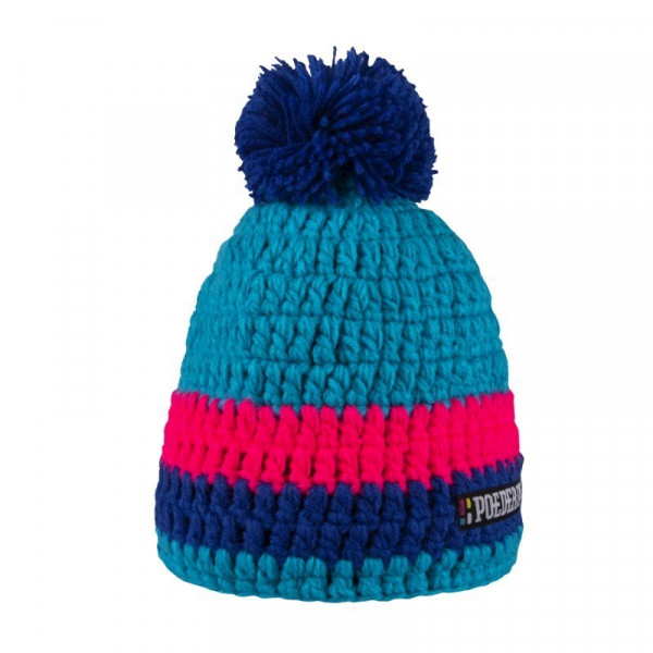 Handgehäkelter Mütze mit Pompon und weichem Fleece auf der Innenseite. Mit gewebtes “Poederbaas“ Etikett.