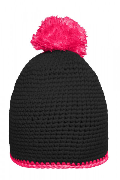 Pompon Hat with Contrast Stripe