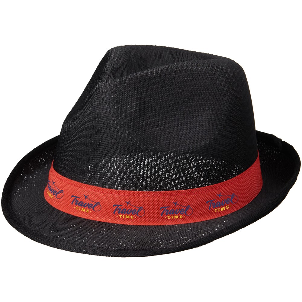 Trilby Set aus Hut und Band. Hut: 100 % Polyester. Hutband: 100 g/m² Polypropylen Faservlies.