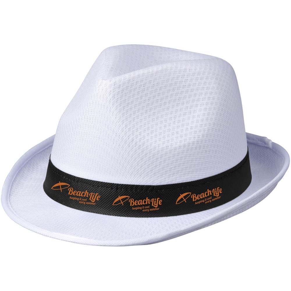 Trilby Set aus Hut und Band. Hut: 100 % Polyester. Hutband: 100 g/m² Polypropylen Faservlies.