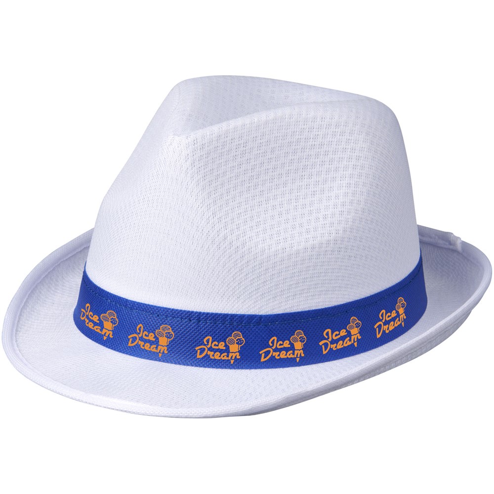Trilby Set aus Hut und Band. Hut: 100 % Polyester. Hutband: 100 g/m² Polypropylen Faservlies.