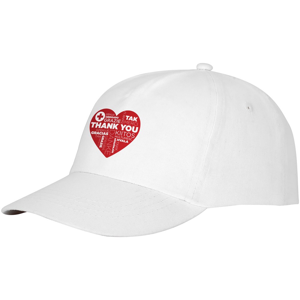 Gestickte Ösen zur Belüftung. Klettverschluss aus Stoff und Schlaufenverschluss.