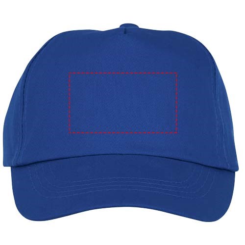 Gestickte Ösen zur Belüftung. Klettverschluss aus Stoff und Schlaufenverschluss. Kopfumfang: 54 cm.