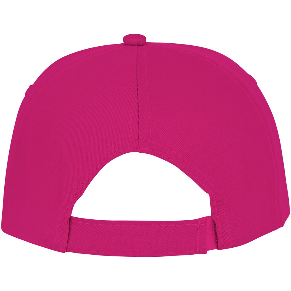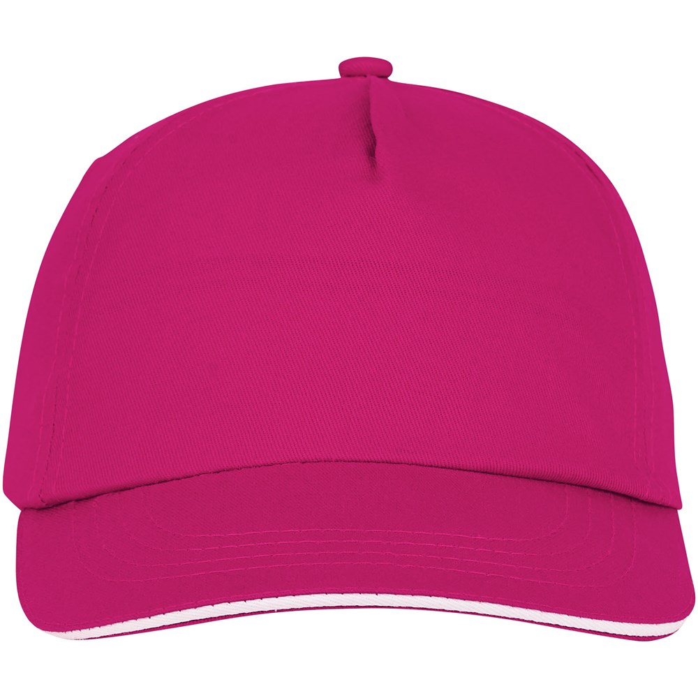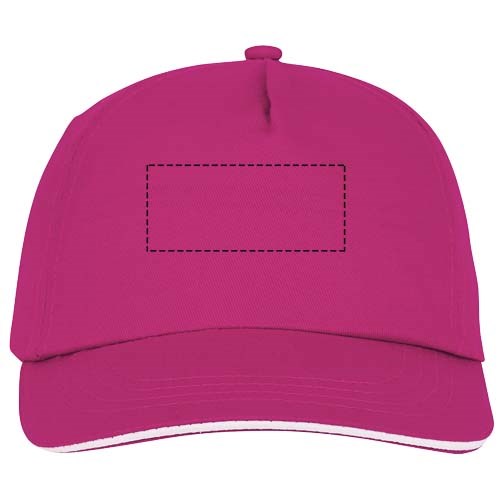 Gebogener Schirm mit Sandwich. Gestickte Ösen zur Belüftung. Klettverschluss aus Stoff und Schlaufenverschluss. Kopfumfang: 58 cm.