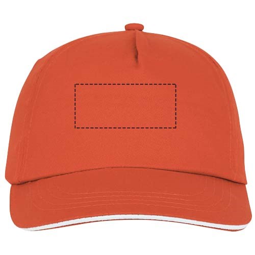 Gebogener Schirm mit Sandwich. Gestickte Ösen zur Belüftung. Klettverschluss aus Stoff und Schlaufenverschluss. Kopfumfang: 58 cm.