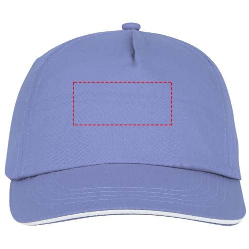 Gebogener Schirm mit Sandwich. Gestickte Ösen zur Belüftung. Klettverschluss aus Stoff und Schlaufenverschluss. Kopfumfang: 58 cm.