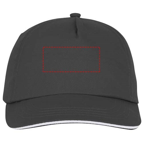 Gebogener Schirm mit Sandwich. Gestickte Ösen zur Belüftung. Klettverschluss aus Stoff und Schlaufenverschluss. Kopfumfang: 58 cm.