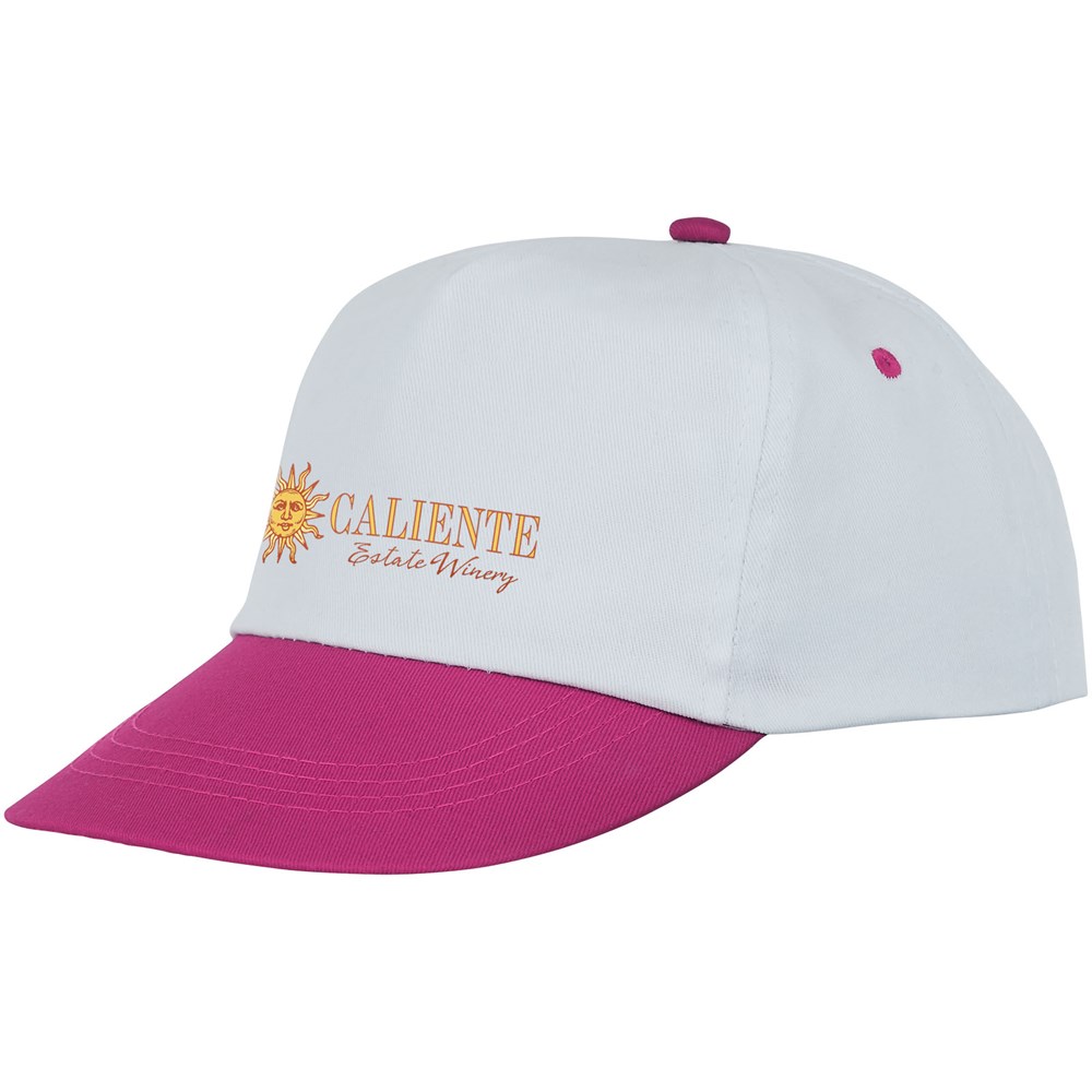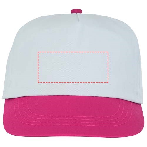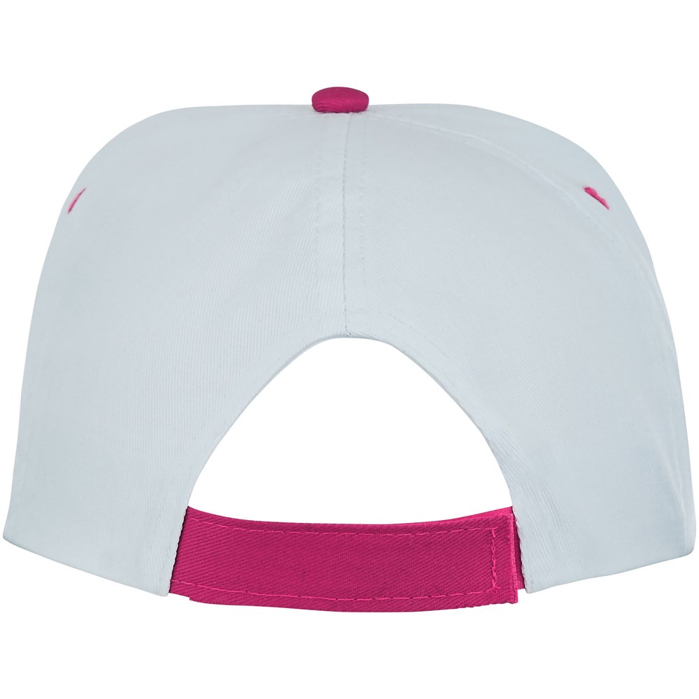 Gebogener Schirm in Kontrastfarbe. Gestickte Ösen in Kontrastfarbe zur Belüftung. Klettverschluss aus Stoff und Schlaufenverschluss. Kopfumfang: 58 cm.