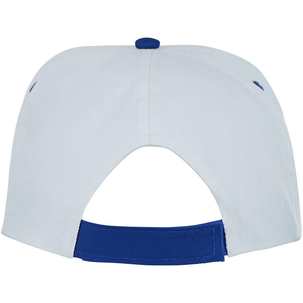 Gebogener Schirm in Kontrastfarbe. Gestickte Ösen in Kontrastfarbe zur Belüftung. Klettverschluss aus Stoff und Schlaufenverschluss. Kopfumfang: 58 cm.