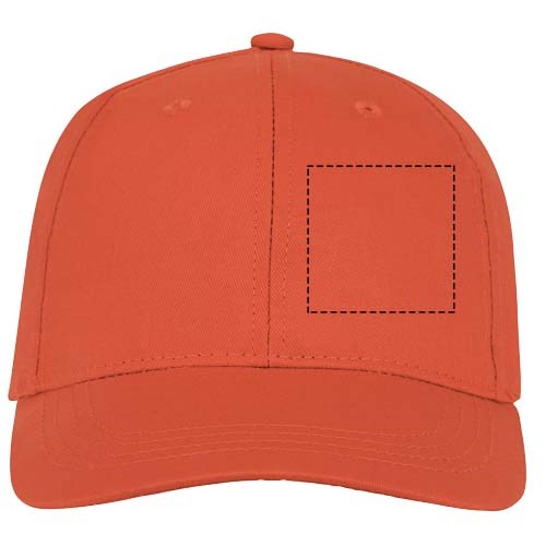 Gestickte Ösen zur Belüftung. Klettverschluss aus Stoff und Schlaufenverschluss. Strukturierte vordere Segmente. Baumwollstoffdetails auf der Innenseite. Kopfumfang: 58 cm.