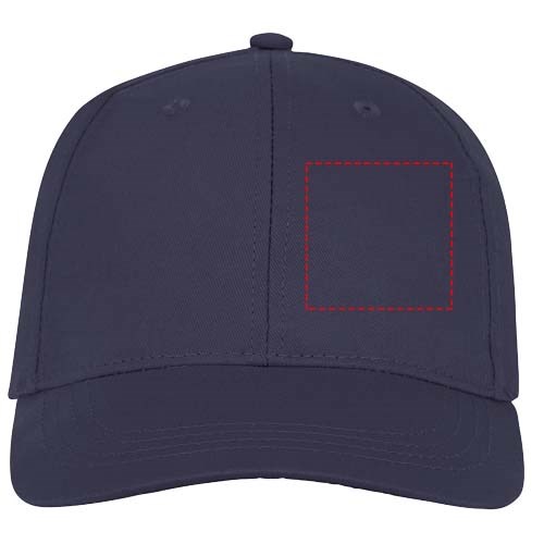 Gestickte Ösen zur Belüftung. Klettverschluss aus Stoff und Schlaufenverschluss. Strukturierte vordere Segmente. Baumwollstoffdetails auf der Innenseite. Kopfumfang: 58 cm.