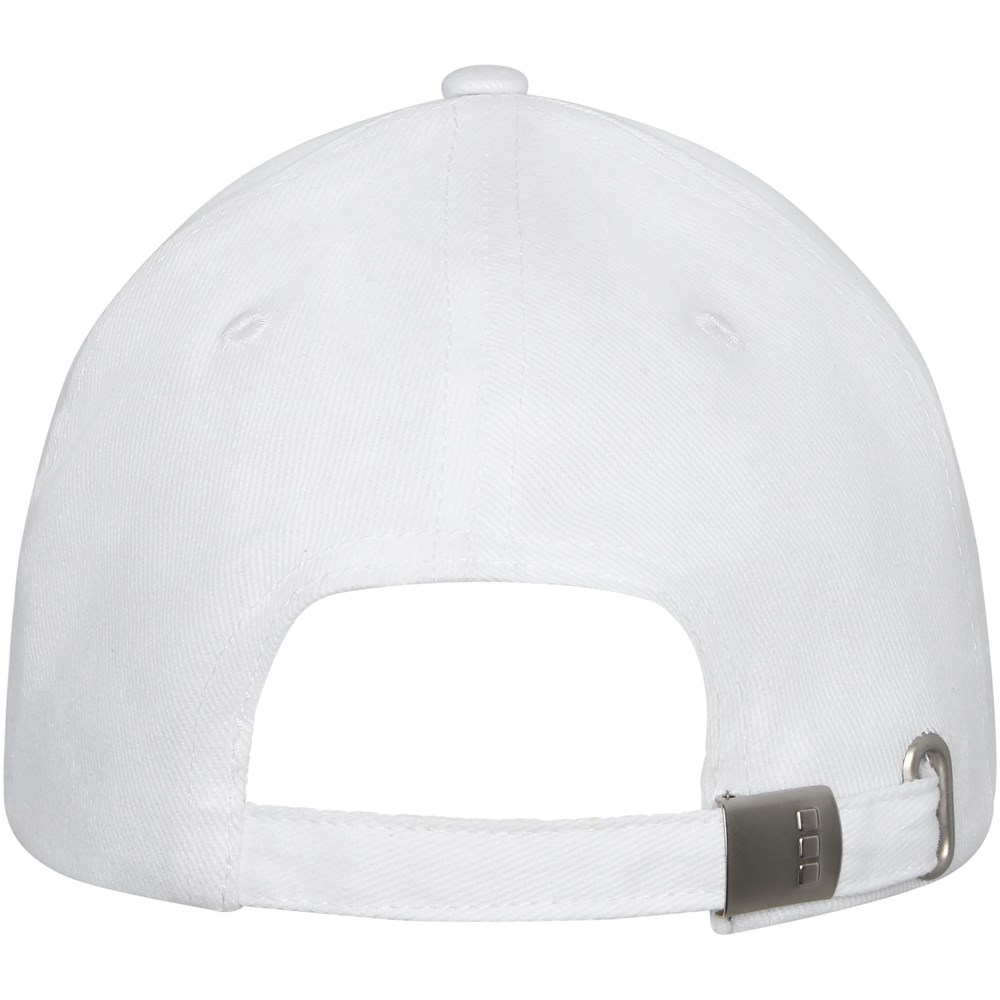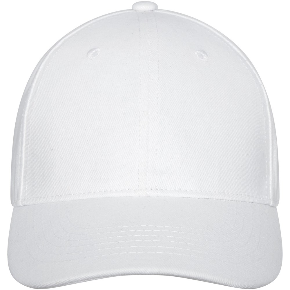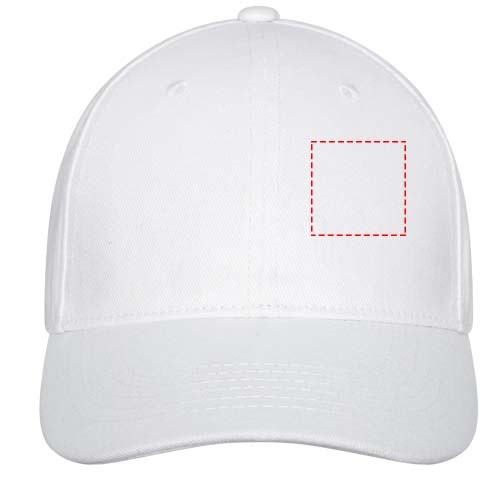 Gebogener Schirm. Gestickte Ösen zur Belüftung. Metallverschluss.