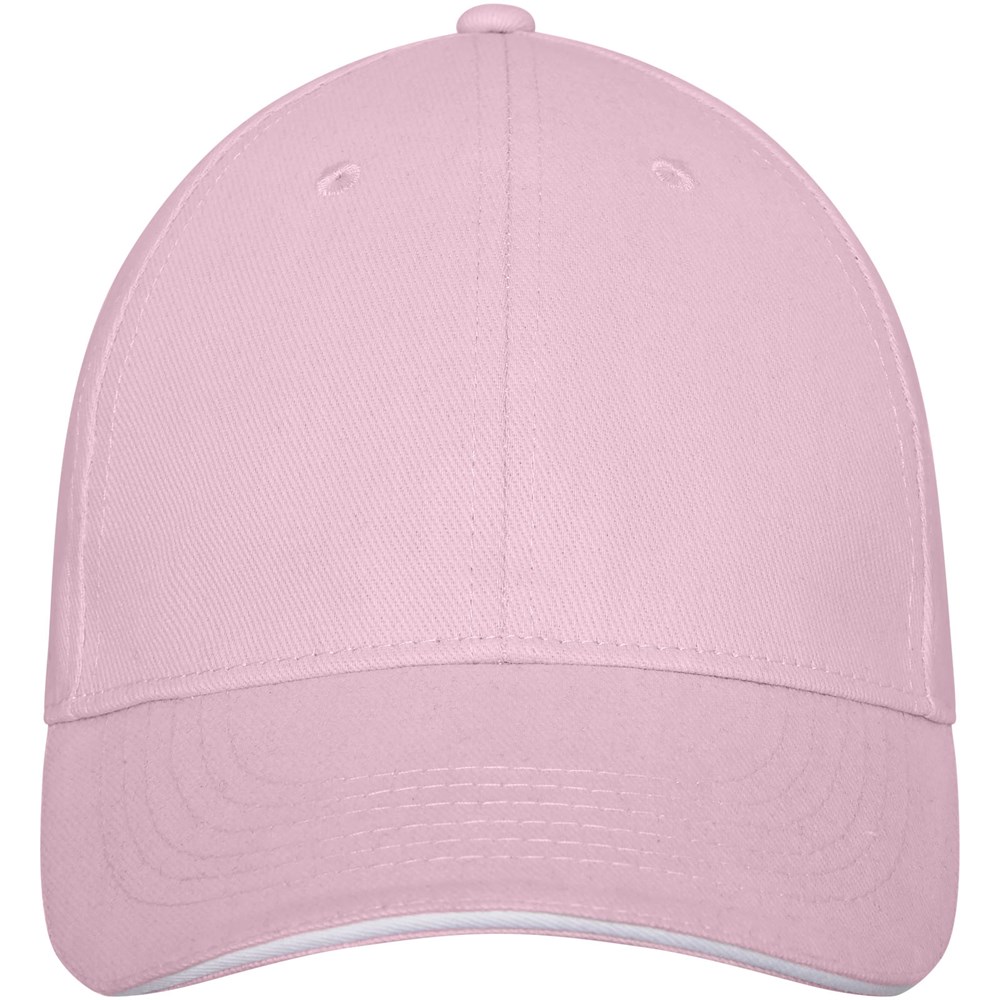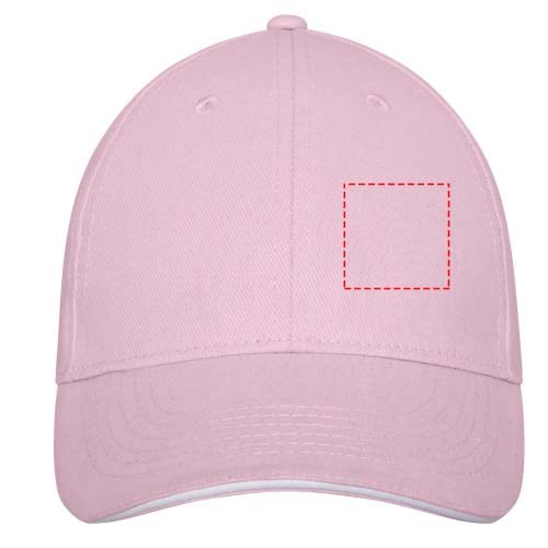 Gebogener Schirm mit Sandwich. Gestickte Ösen zur Belüftung. Metallverschluss.