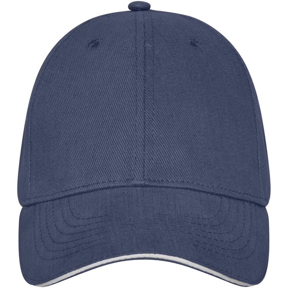 Gebogener Schirm mit Sandwich. Gestickte Ösen zur Belüftung. Metallverschluss.