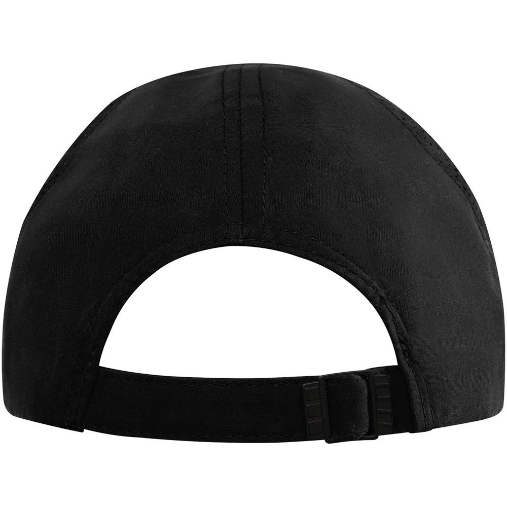Nachhaltige Kappe für Werbezwecke. Vorgebogener Schirm mit Sandwichdesign. Gelaserte Belüftungslöcher. Schnallenverschluss aus Metall