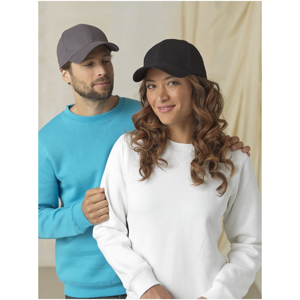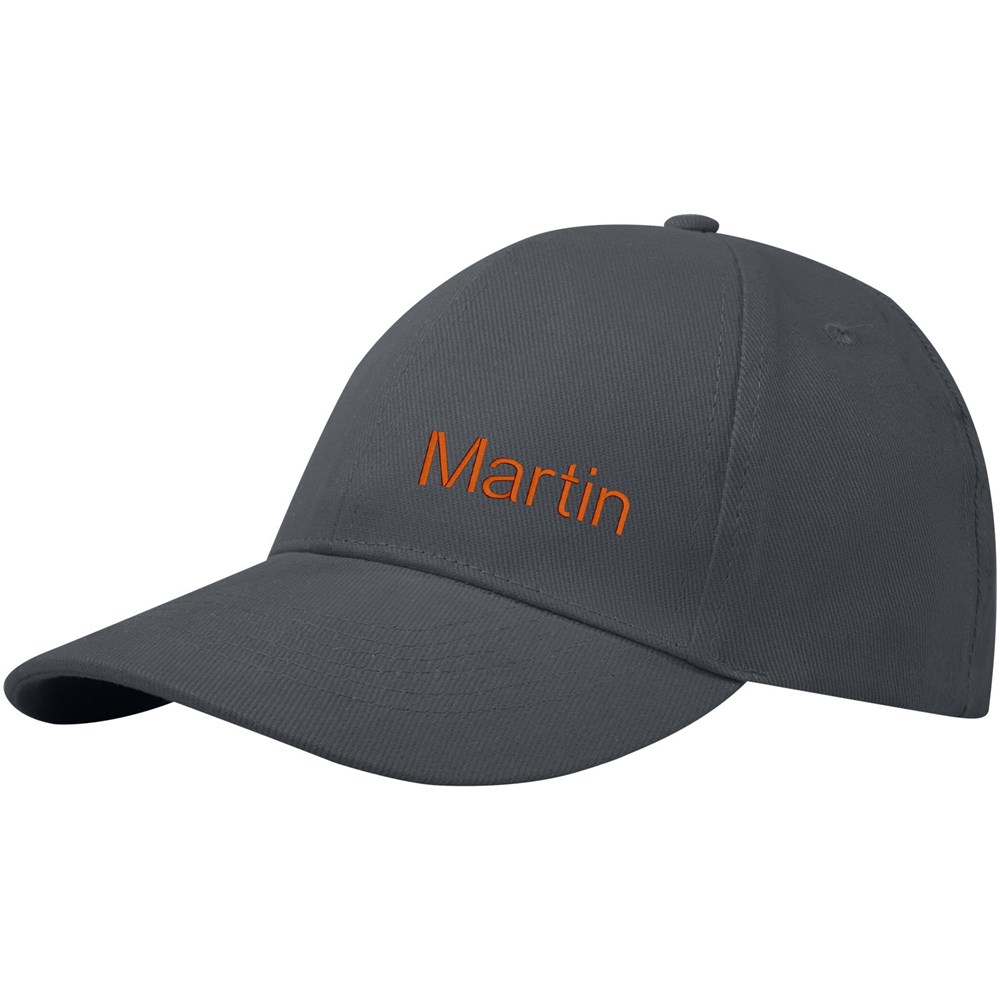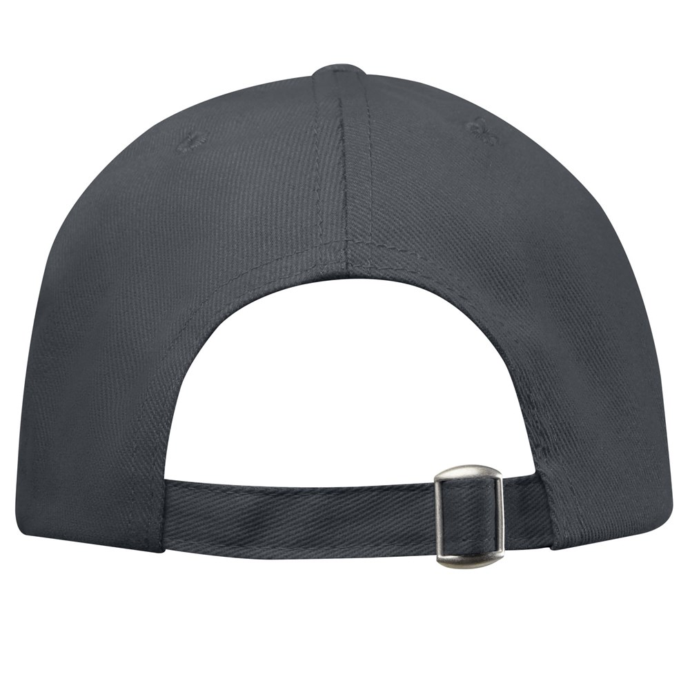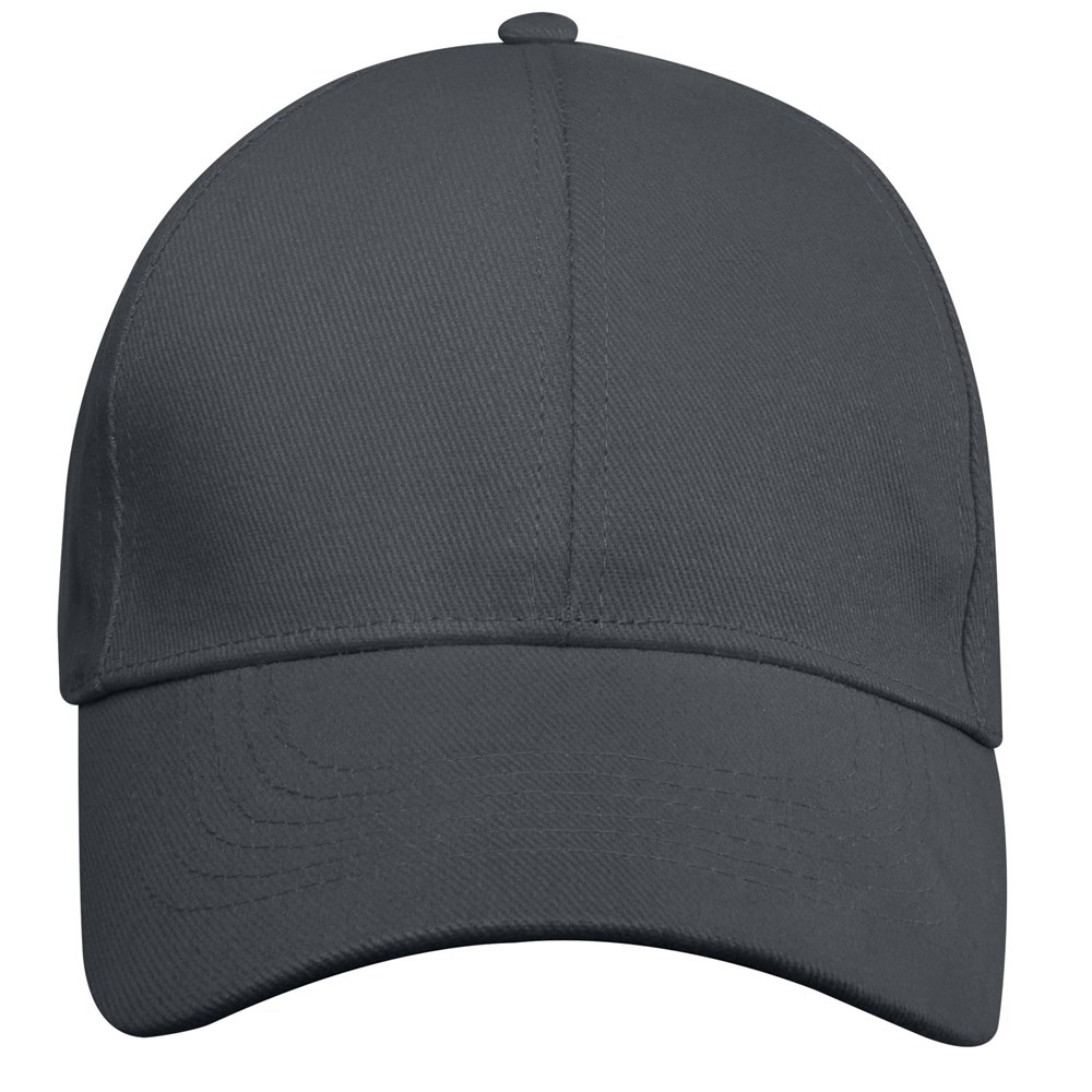 Nachhaltige Kappe für Werbezwecke. Vorgebogener Schirm. Gestickte Ösen zur Belüftung. Dreifach-Gleitverschluss mit Metallschnalle.