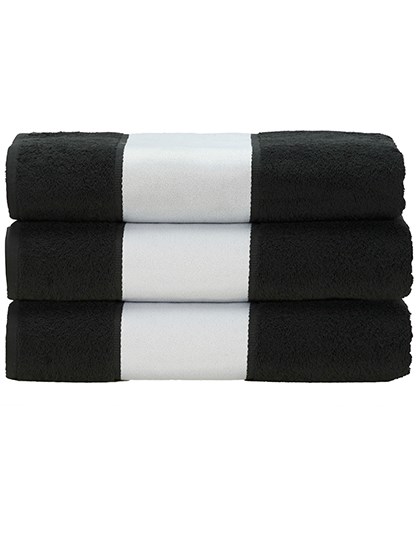 Handtuch mit 10 cm breiter sublimationsfähiger Bordüre, auf der Text/Logo oder Fotos vollfarbig gedruckt werden können | Handtuch aus 100% Baumwollte, Bordüre aus 100% Polyester