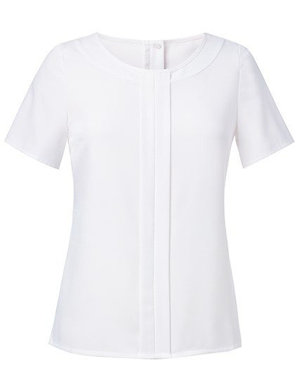 Kurzarm Damenbluse | Rundhals | Details an der Vorderfalte | Brustabnäher | Goldener Reissverschluss am Rücken | Maschinell waschbar bis 30 °C