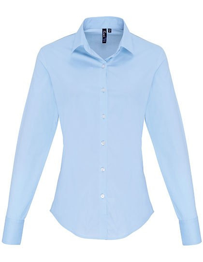 Premier Workwear - Ladies Stretch Fit Poplin Long Sleeve Cotton Shirt
