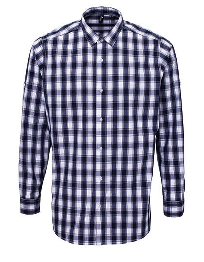 Roll-Sleeve-Option mit Knopf- und Laschenverschluss am Oberarm | Geknöpfte Manschette, wenn langärmelig getragen | Schmale Softkragen-Optik | Halbtaillierte Passform für Herren | Attraktives Karomuster | Passender Artikel für Damen: PW350