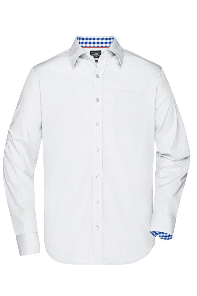 Hochwertige, bügelleichte Popeline Qualität mit Easy-Care Finish Abgerundeter Saum JN619: Classic fit, leicht tailliert, Brusttasche 13 x 15 cm, 2 seitliche Rückenfalten JN618: Taillierter, femininer Schnitt.