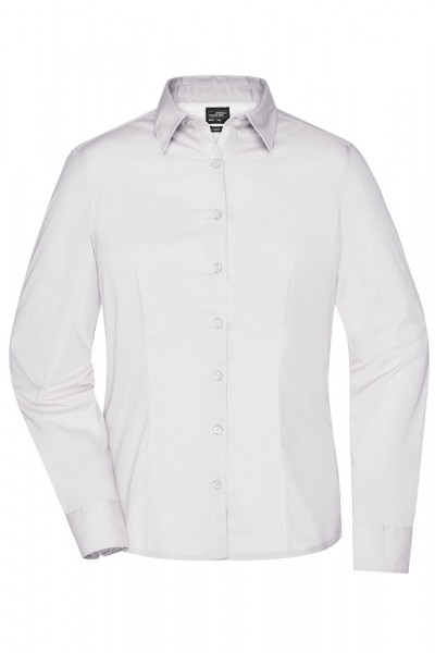 Pflegeleichte Popeline-Qualität mit Easy-Care-Ausrüstung Abgerundeter Saum 60°C waschbar JN641: Taillierter, femininer Schnitt JN642: Classic fit, leicht tailliert, Brusttasche 12 x 14 cm, Rückenfalten an Rückenpasse.