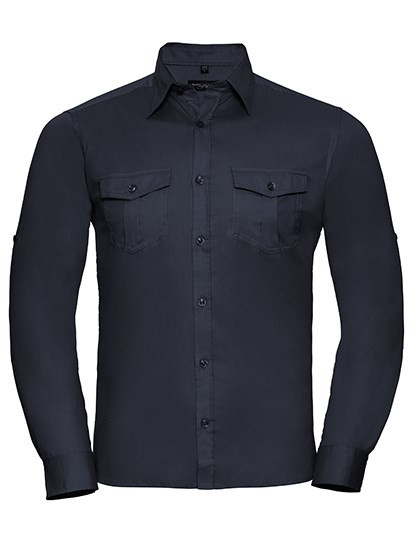 Russell Collection - Men`s Roll Long Sleeve Fitted Twill Shirt