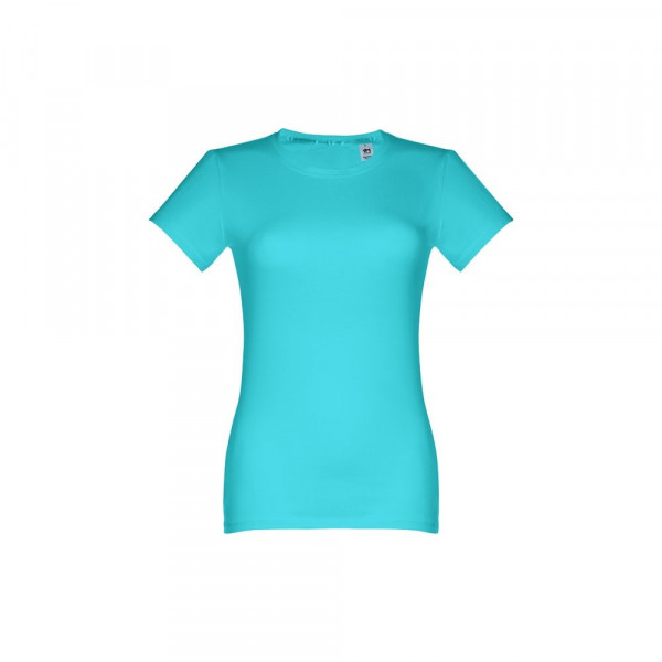 Damen T-shirt aus 100% Strickjersey und Baumwolle (190g/m²) mit kardiertem Baumwollfaden, tailliert. Diese hat einen dünnen Jersey-Kragen mit Satin-Verstärkungsband und Doppelnaht an Ärmeln und Saum. Bei der Farbe 183 bestehend aus 90% Baumwolle und 10% Viskose. Größen: S, M, L, XL, XXL