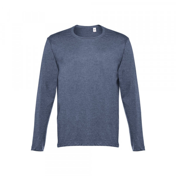 Herren Langarmshirt aus 100% Strickjersey und Baumwolle (150g/m²) mit kardiertem Baumwollfaden, in Tubular-Form, geripptem Kragen in 1x1 Ripp, Jersey-Verstärkung und Doppelnaht an Ärmeln und Saum.Bei den Farben 194, 195 und 199 bestehend aus 60% Baumwolle und 40% Polyester. Größen: S, M, L, XL, XXL