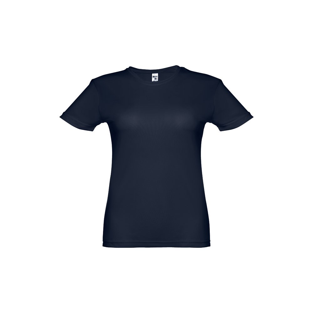 Damen Sport T-Shirt aus 100% Strickjersey und Polyester (130g/m²), dieser Stoff ist bequem und atmungsaktiv. Dieses T-Shirt ist leicht tailliert, hat ein Verstärkungsband am Kragen und eine Doppelnaht an Ärmeln und Saum. Größen: S, M, L, XL, XXL
