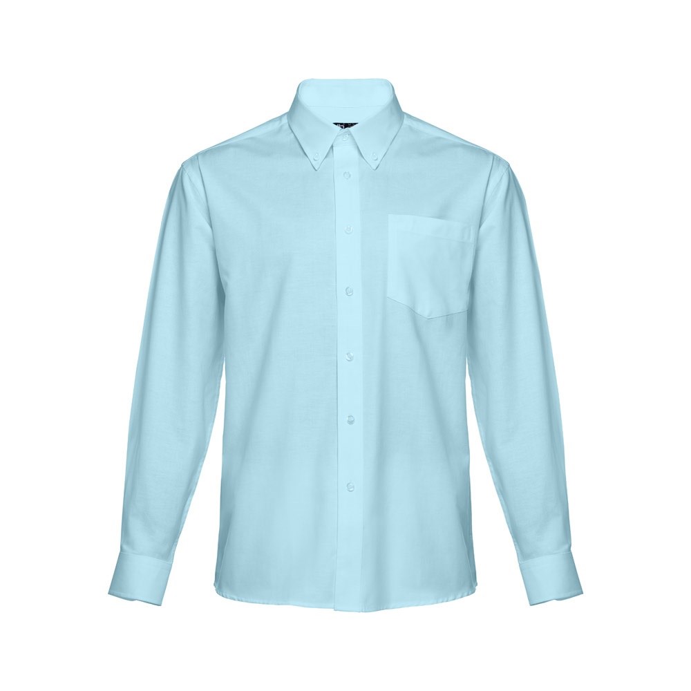 Herren langarm Oxford Hemd aus 70% Baumwolle und 30% Polyester (130g/m²) mit einer Brusttasche auf der linken Seite, einem Kragen mit zwei Knöpfen, verstellbare Manschetten mit 2 Knöpfen und einer Knopfleiste mit 7 farblich abgestimmten Knöpfen. Größen: S, M, L, XL, XXL