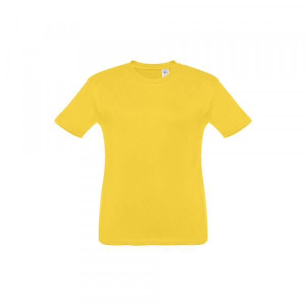 Kinder T-Shirt aus 100% Strickjersey und Baumwolle (150g/m²), unisex mit geripptem Kragen in 1x1 Ripp, Jersey-Verstärkung und Doppelnaht an den Ärmeln und Saum. Größen: 2, 4, 6, 8, 10, 12