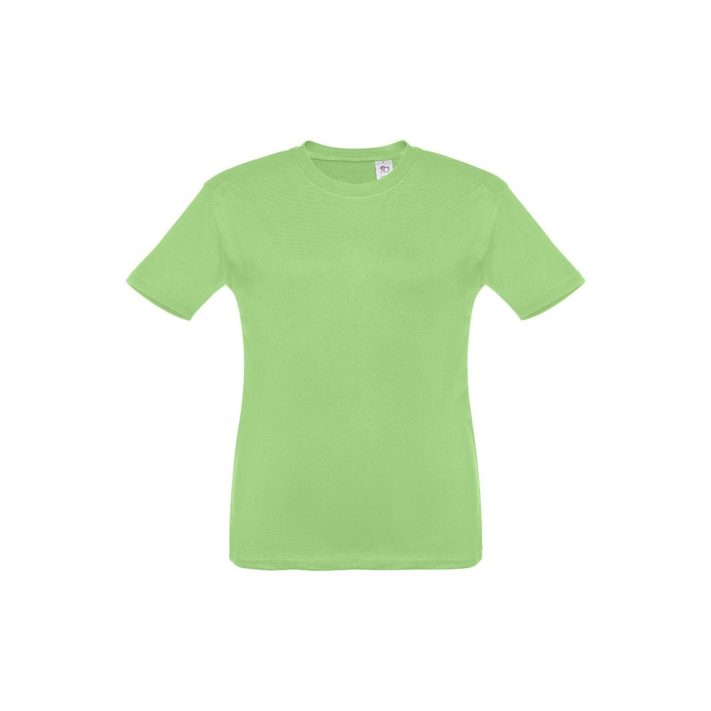 Kinder T-Shirt aus 100% Strickjersey und Baumwolle (150g/m²), unisex mit geripptem Kragen in 1x1 Ripp, Jersey-Verstärkung und Doppelnaht an den Ärmeln und Saum. Größen: 2, 4, 6, 8, 10, 12